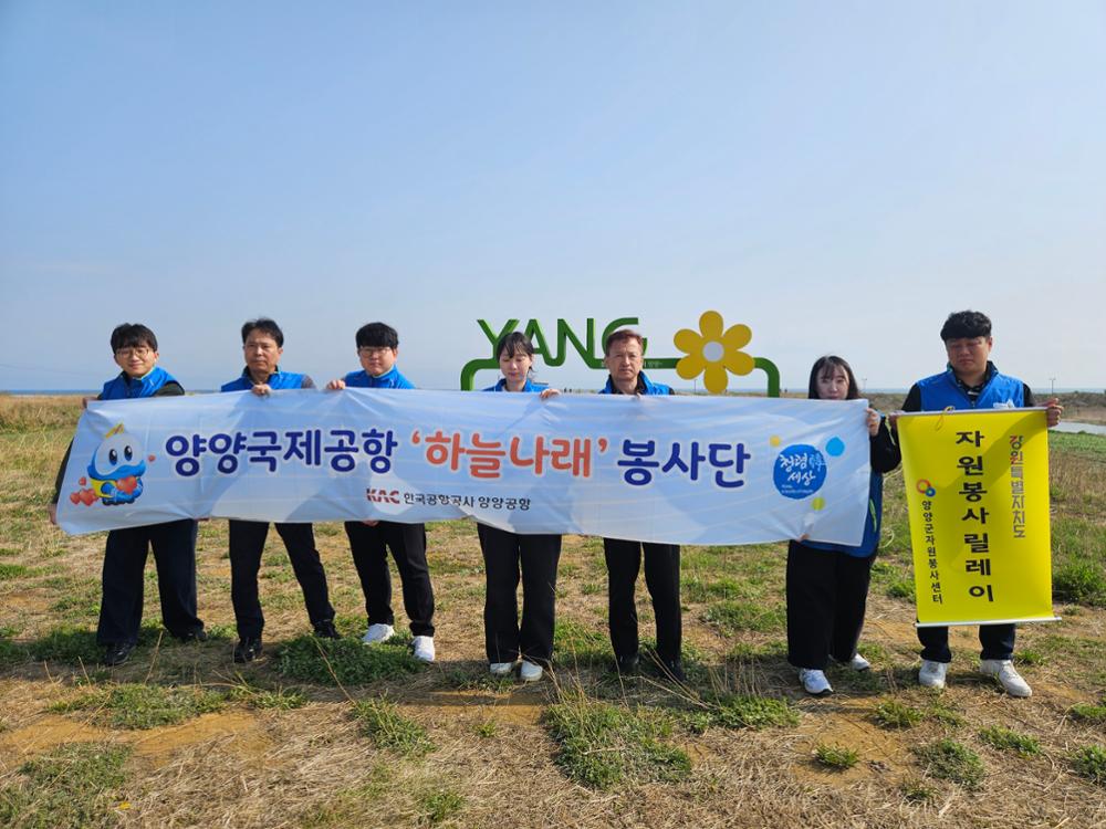 양양군자원봉사센터는 자원봉사 릴레이 활동의 일환으로, 한국공항공사 양양공항(공항장 직무대리 박병로) 하늘나래 봉사단과 함께 남대천 일대에서 환경정화 활동을 실시했습니다.
